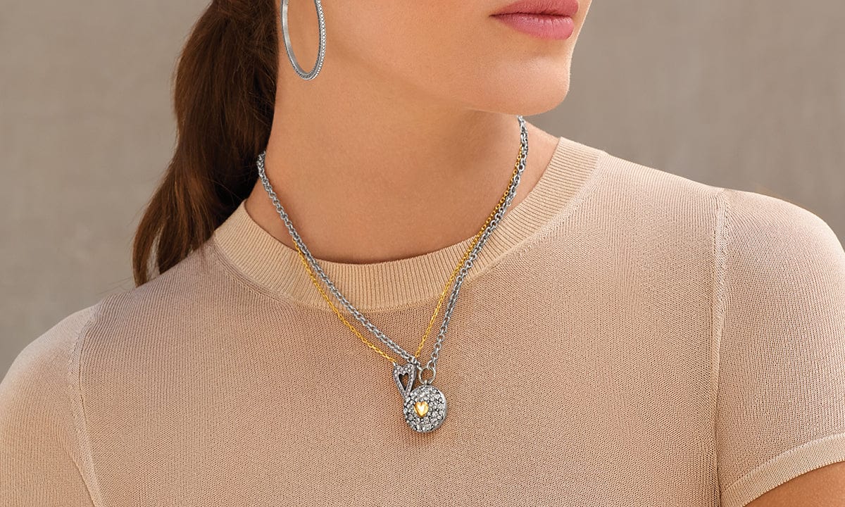 With the glow of gold and a dusting of artisan hand-set fine European crystals, two-tone Garden of Love jewelry celebrates the beauty of gardens and has an opulent look that’s perfect to wear with all your silver and gold jewelry.