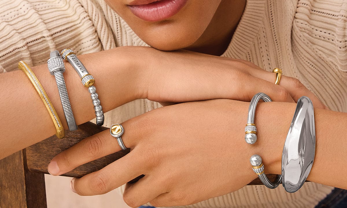 Express your style through your bracelet stack! Combine different textures, metals and sparkle for a look that is completely your own…from artisan chic to layered and colorful sparkle, combinations of bracelets can create different looks!
