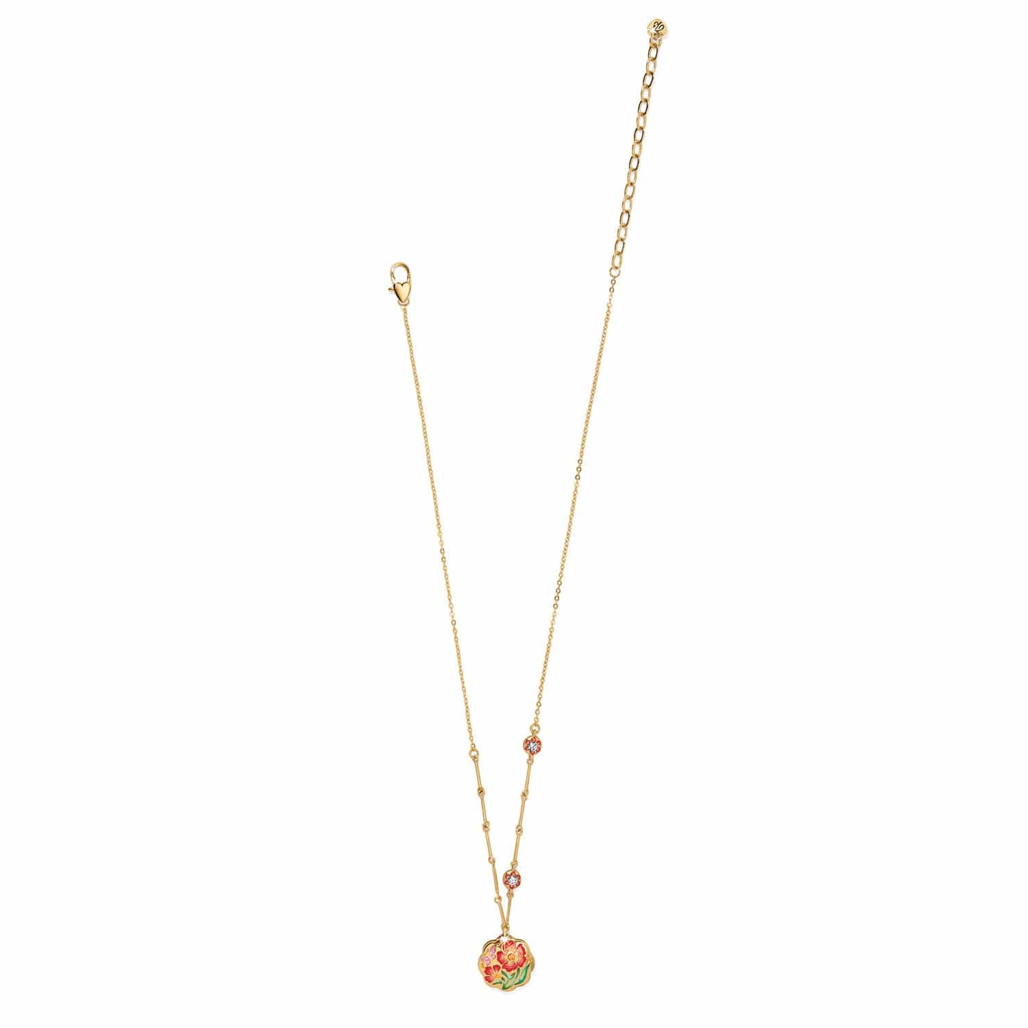 The pendent is very pretty- but it does not lay flat with the design side up. I have quite a few Brighton pieces in silver and in gold that are so well made and look like quality jewelry. Unfortunately- this necklace looks very cheaply made- including the gold tone. I was surprised when I received it. I did return it and do not recommend it at all.